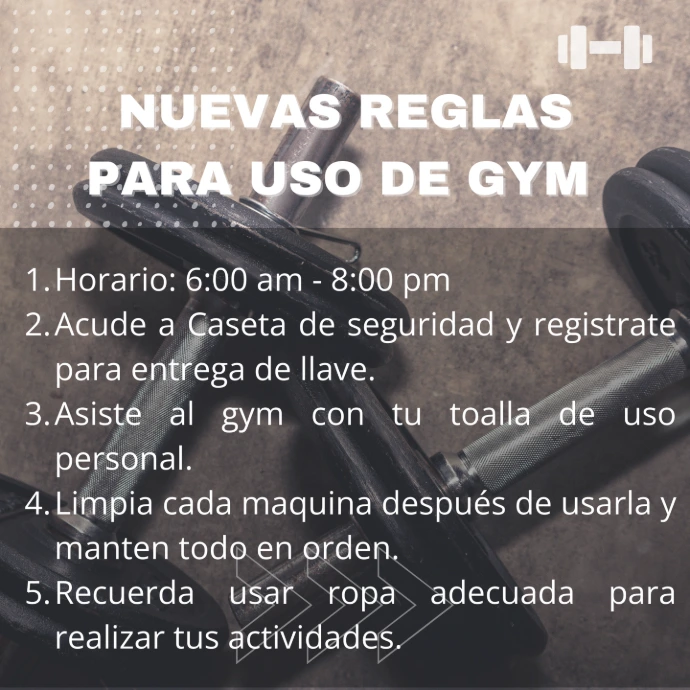 Para que todos podamos disfrutar de un entrenamiento seguro y cómodo, hemos actualizado el reglamento del gimnasio. Pequeños pasos hacen que nuestro tiempo de bienestar sea mejor para todos.